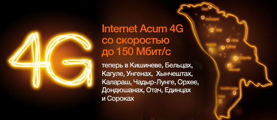 Клиенты Orange становятся первыми в Молдове, которым повезло испытать самый скоростной беспроводной интернет. Впервые, компания увеличила на 50% скорость Мобильного Интернета 4G, которая теперь достигает 150 Мбит/с. Таким образом, пользователи Internet Acum и владельцы смартфонов 4G могут в полной мере наслаждаться преимуществами технологии LTE в 12 городах страны: