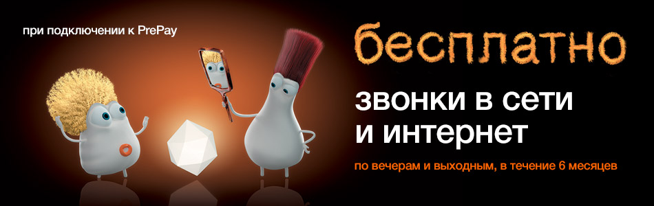 Orange PrePay идеально тебе подходит. Любимые персонажи Millidge и Doig возвращаются и приносят с собой только хорошие новости. Выбери сейчас номер PrePay, чтобы бесплатно общаться и пользоваться интернетом по вечерам и в выходные. Выбери PrePay, чтобы говорить с друзьями и весело проводить время онлайн с телефона, по своему усмотрению. Подробности о предложении здесь. |