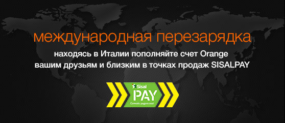 Теперь у Вас есть еще больше возможностей пополнить счет Orange непосредственно с территории Италии в точках продажи SISALPAY. Более того, твои родные могут порадовать тебя издалека. Посредством этого же платежного оператора, они могут пополнять твой счет Orange прямо из Италии. SISALPAY является крупнейшим платежным оператором в Италии и твой счет Orange может быть пополнен в любой из 42 000 точек продаж в стране. Подробности на https://www.sisalpay.it Пополняйте и общайтесь легко, даже если Вы далеко от дома. |