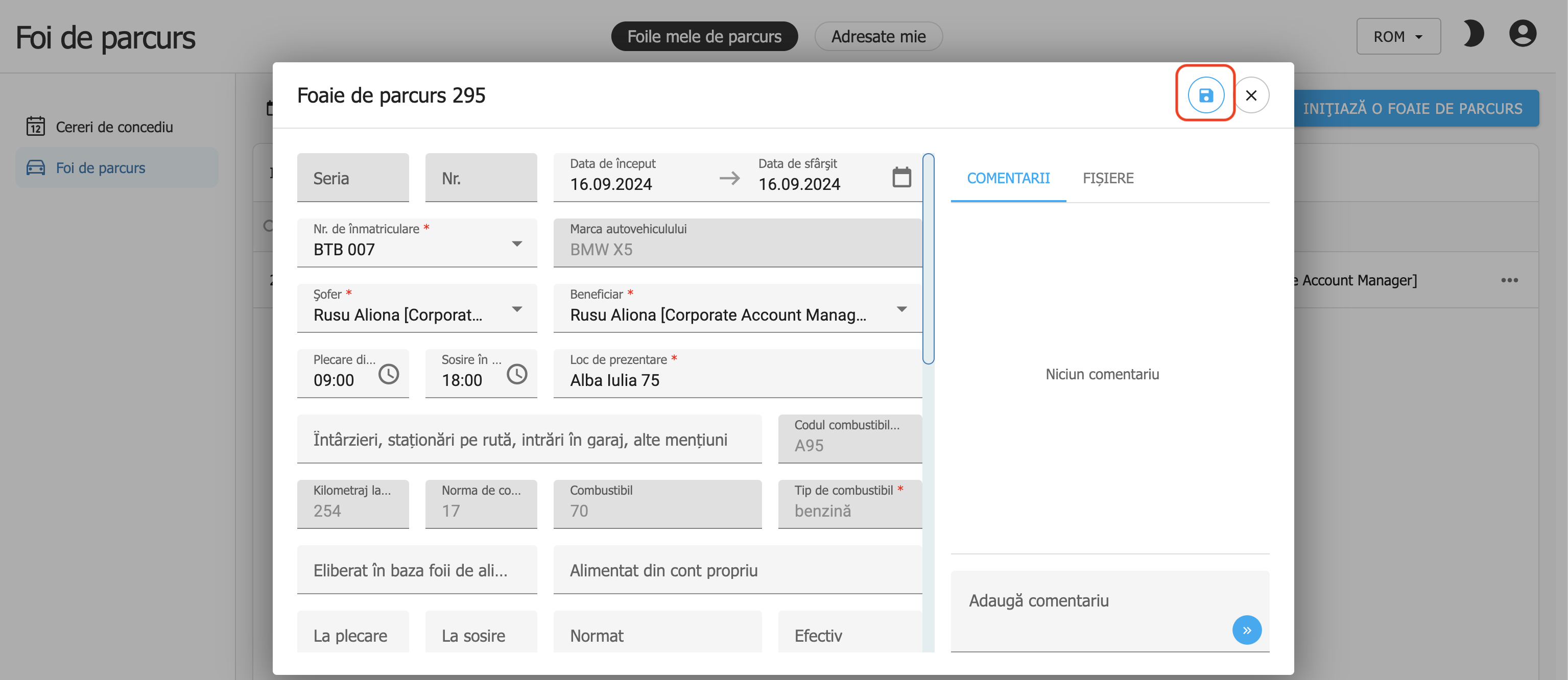 Acest flux permite inițierea și înregistrarea rutelor, zilnic sau pe perioade, aprobarea de către superior și semnarea digitală de către șofer a documentului (PDF) generat, păstrat și disponibil spre descărcare din platformă, disponibil de pe telefon sau orice alt dispozitiv.