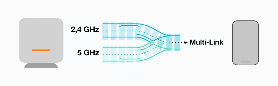 folosește ambele benzi simultan (2,4 și 5 GHz)