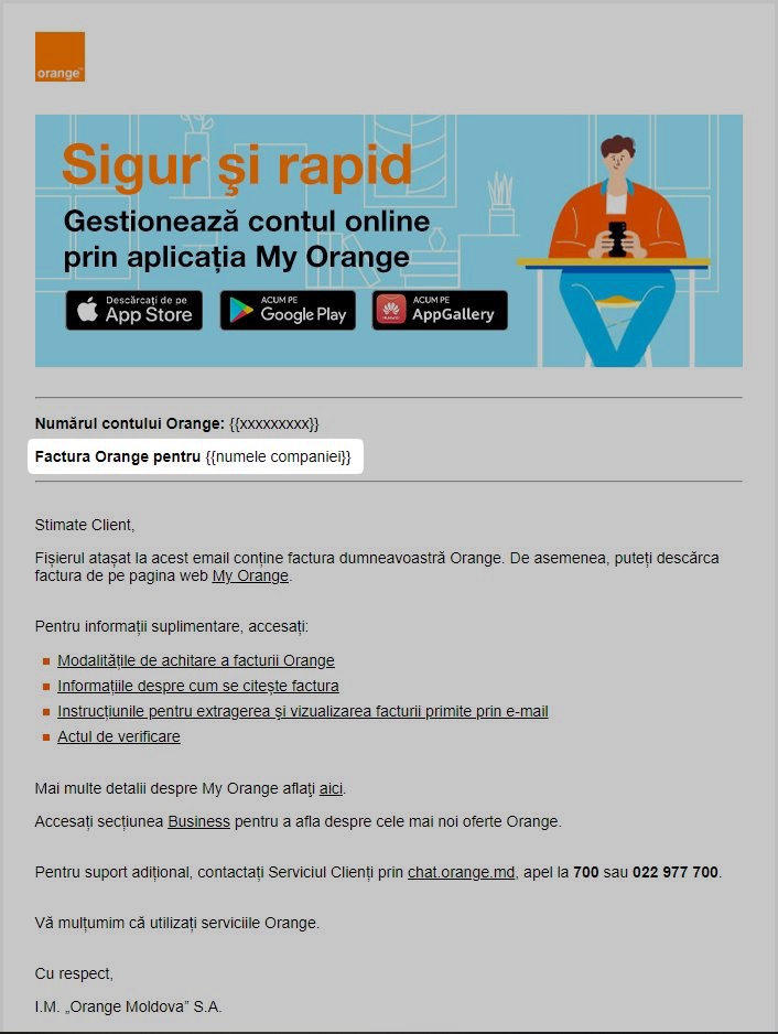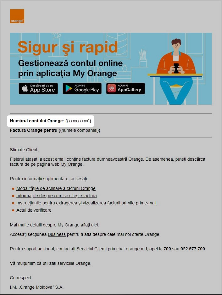 Dacă nu ai un Cont de administrator în My Orange, înregistrează-te acum și primește 10 GB bonus. Completează modelul de cerere și expediaz-o la corporate@orange.md pentru a beneficia în continuare de Actul de verificare ușor și rapid.