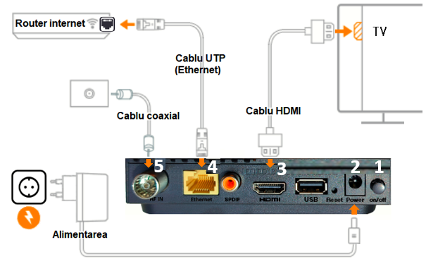 - Folosește cablu LAN (UTP) pentru a conecta decodorul la router-ul tău.