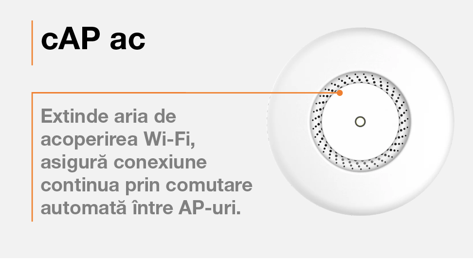 este un punct de acces wireless puternic și performant, cu un design elegant ce se integrează perfect atât pe pereți, cât și pe tavane. Oferă Wi‑Fi AC1200 (300 Mbps @ 2.4 GHz + 867 Mbps @ 5 GHz), procesor quad-core IPQ-4018, 128 MB RAM și RouterOS cu licență L4 — combinația ideală între viteză, capacitate și gestionare avansată.