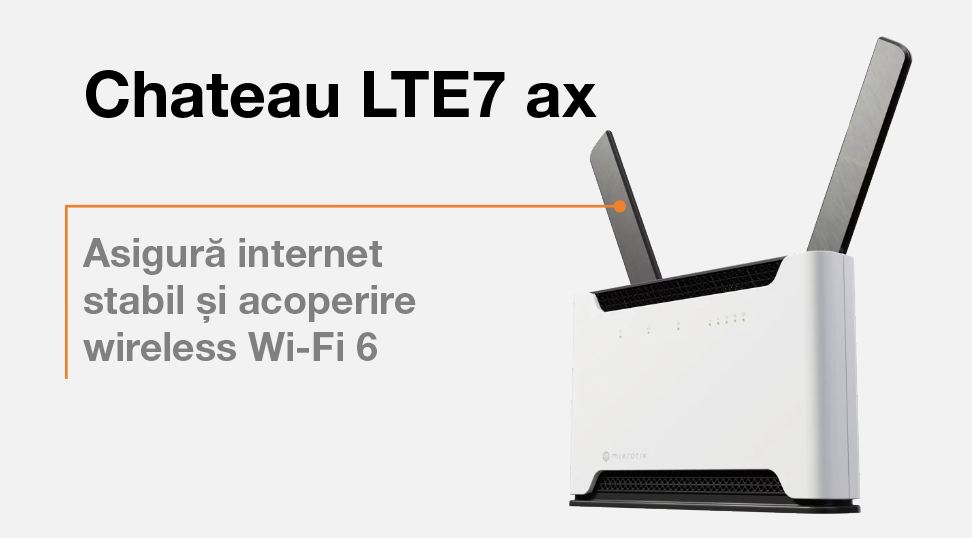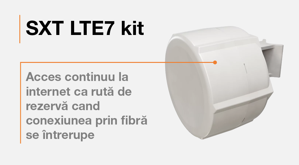 soluție de backup prin LTE Cat.7 care restabilește imediat accesul la internet în cazul unei întreruperi a conexiunii prin fibră, asigurând performanță și stabilitate.