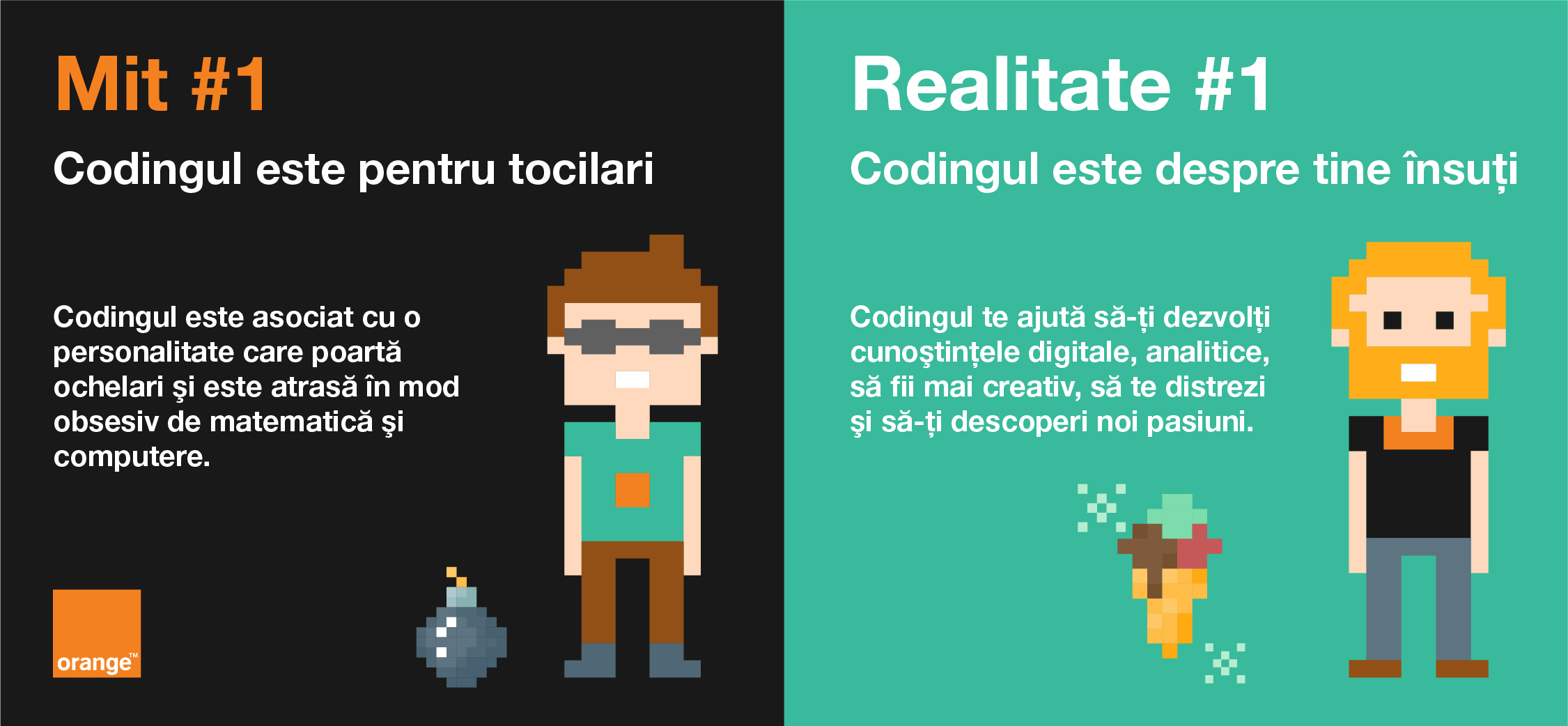 https://scratch.mit.edu este un instrument esențial pentru coding pentru că îţi oferă posibilitatea să creezi animaţii scurte, compoziţii muzicale, proiecte video senzoriale sau sute de alte proiecte. SCRATCH-ul este un instrument excelent pentru practicarea coding-ului vizual şi pentru a incita curiozitatea şi pasiunea ta, în timp ce îţi dezvolţi abilităţile de gândire tehnologică. Unul din proiectele noastre preferate este crearea personajelor şi fundalurilor proprii, bazate pe imagini încărcate de pe anumite platforme sau pictate.