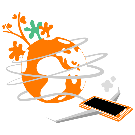 Telefonul tău are un impact asupra mediului de-a lungul întregii sale vieți, dar nu trebuie să îți faci griji: la Orange ai la îndemână programe care să te ajute să îi reduci efectele negative și toate informațiile necesare pentru a alege un dispozitiv cât mai prietenos cu natura.