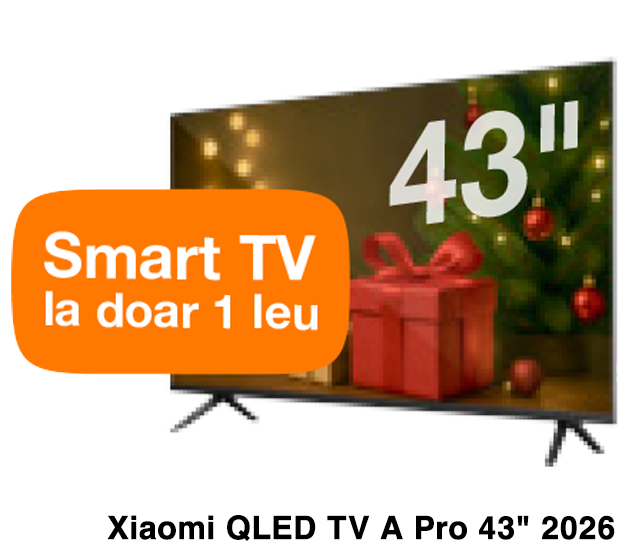 • 1 leu pentru Smart TV 43" Xiaomi QLED TV A Pro 43" sau Xiaomi 43 A2025 LED - la conectarea abonamentului Fibră + TV ULTRA (350 lei) sau Fibra + TV ULTRA FTTR (500 lei)