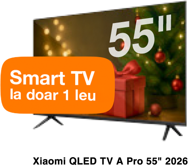 • 1 leu pentru Smart TV 55", Xiaomi QLED TV A Pro 55" – la conectarea abonamentului Fibră + TV INFINITY
