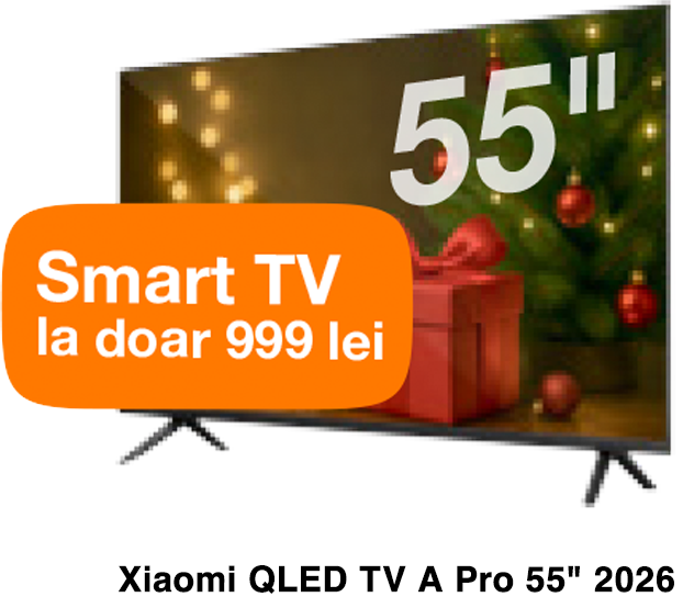 • 999 lei pentru Smart TV 55", Xiaomi QLED TV A Pro 55" – la conectarea abonamentului Fibră + TV ULTRA FTTR