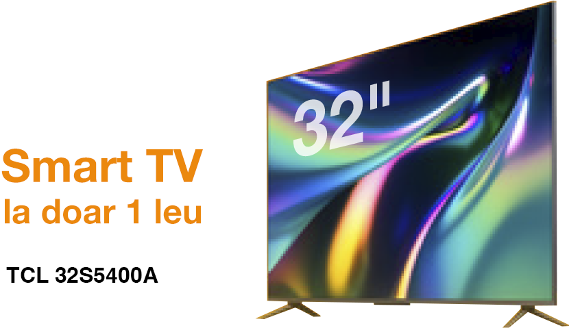 - 1 leu pentru Smart TV 32" TCL 32S5400A - la conectarea abonamentului Fibră + TV OPTIM (250 lei)