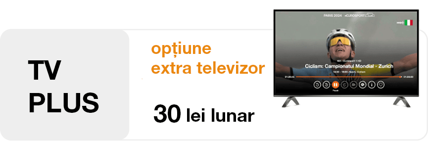 Gratuit cu orice abonament Fibră + TV Interactiv sau opțiunea TV PLUS
