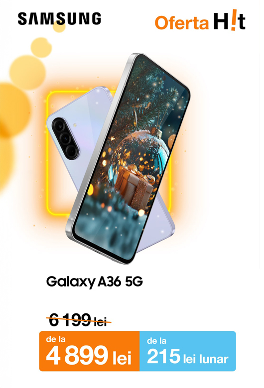 Poți opta și pentru Samsung Galaxy A36 5G, acum cu 1300 lei reducere, disponibil și în rate de la doar 215 lei lunar. Sau comandă HONOR X7d, un smartphone cu baterie puternică și cameră cu AI, acum la doar 2999 lei sau 130 lei lunar.