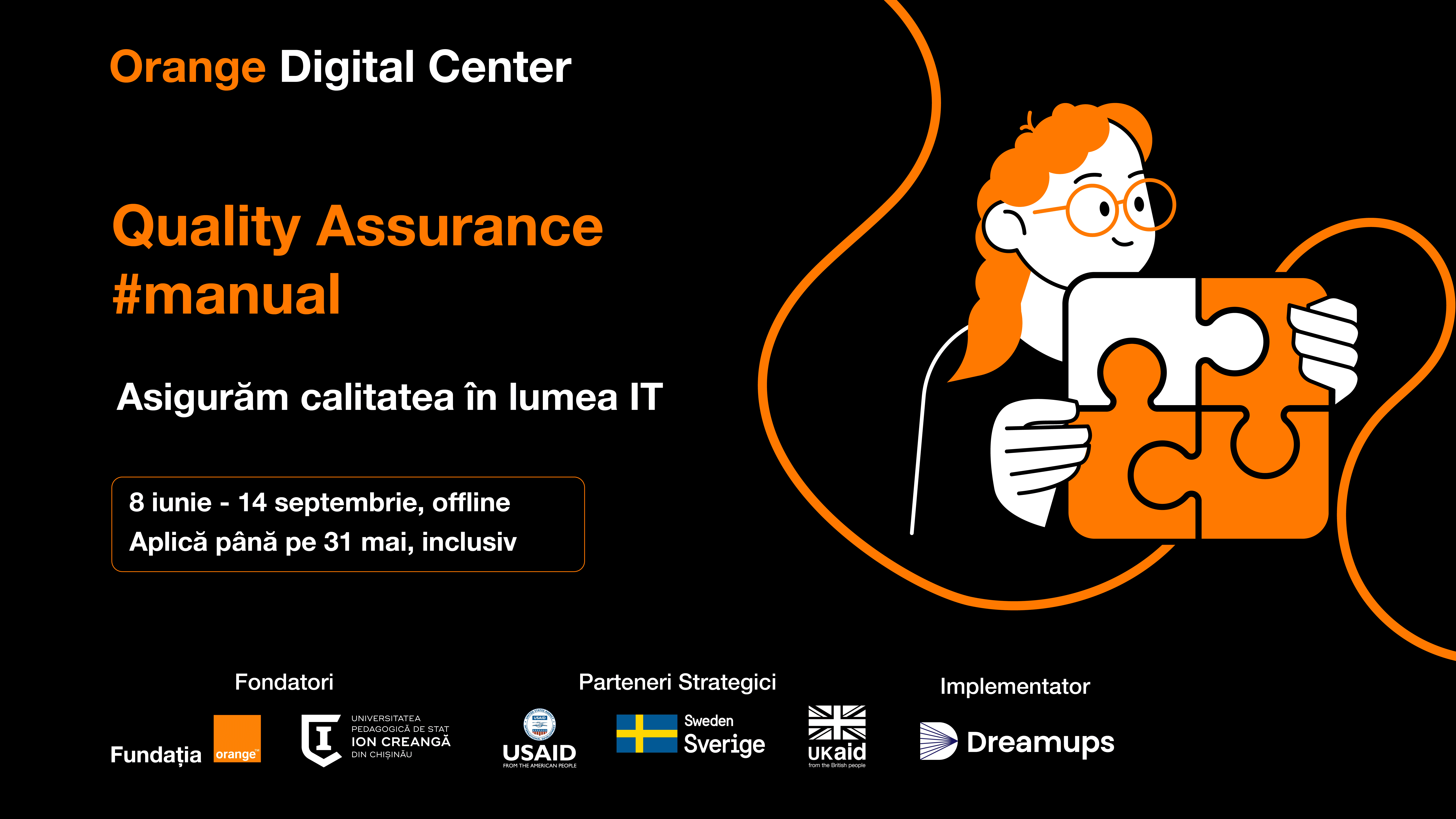 Programul de învățare Quality Assurance #manual este lansat de Fundația Orange și este realizat în parteneriat cu Acceleratorul de Inovații și Antreprenoriat Dreamups, sub umbrela Orange Digital Center.