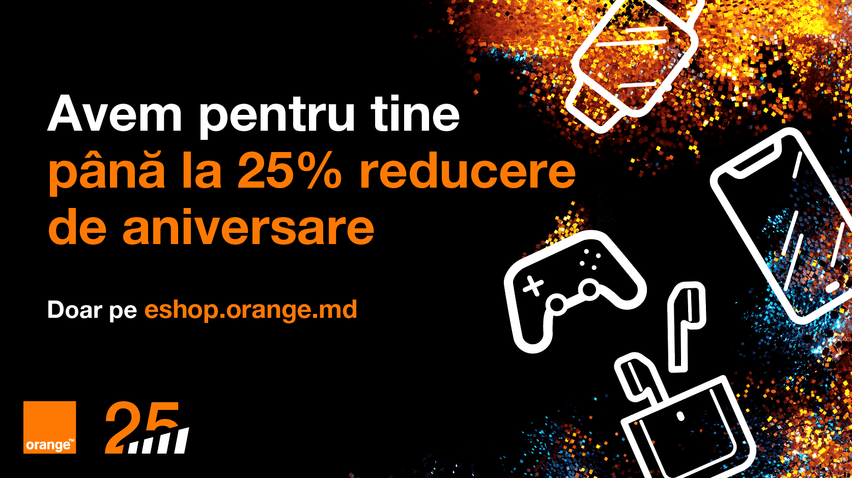 Noutățile bune de la Orange nu se opresc aici. În luna octombrie, la comanda online pe www.orange.md/shop, clienții se bucură de până la 25% reducere la o colecție extinsă de telefoane, televizoare, gadgeturi și accesorii.