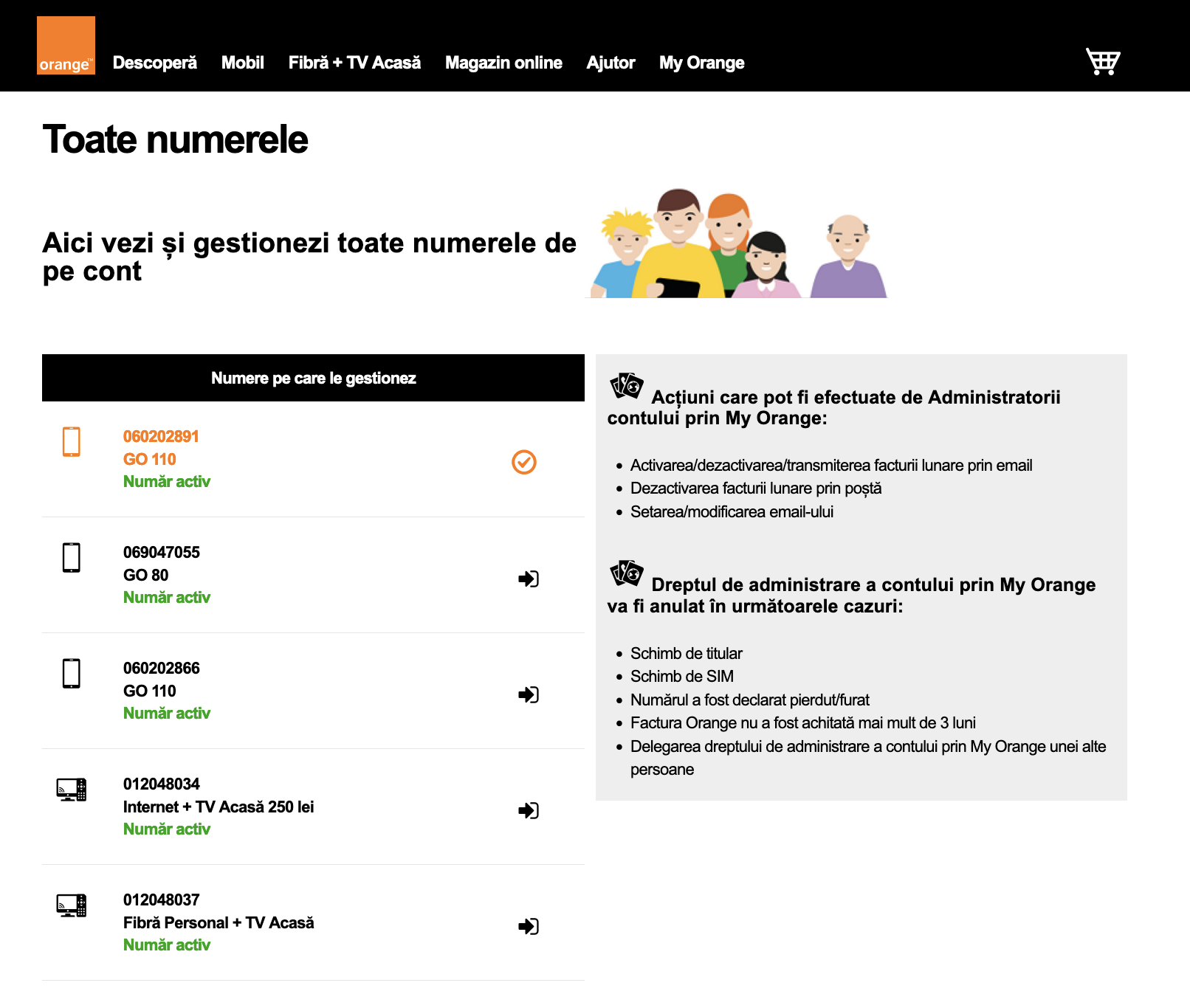 Acum, accesând my.orange.md, te vei loga prin Cont Orange și vei putea vizualiza și gestiona toate numerele odată. Mai mult, sesiunea durează 60 de zile, ceea ce înseamnă că nu vei introduce parola de fiecare dată.