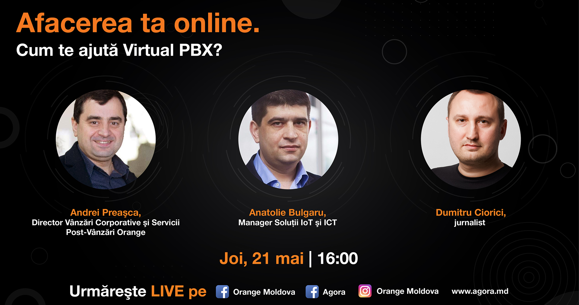 Live-ul va fi transmis pe paginile de Facebook Orange Moldova și Agora, pe pagina de Instagram OrangeMoldova și pe www.agora.md.
