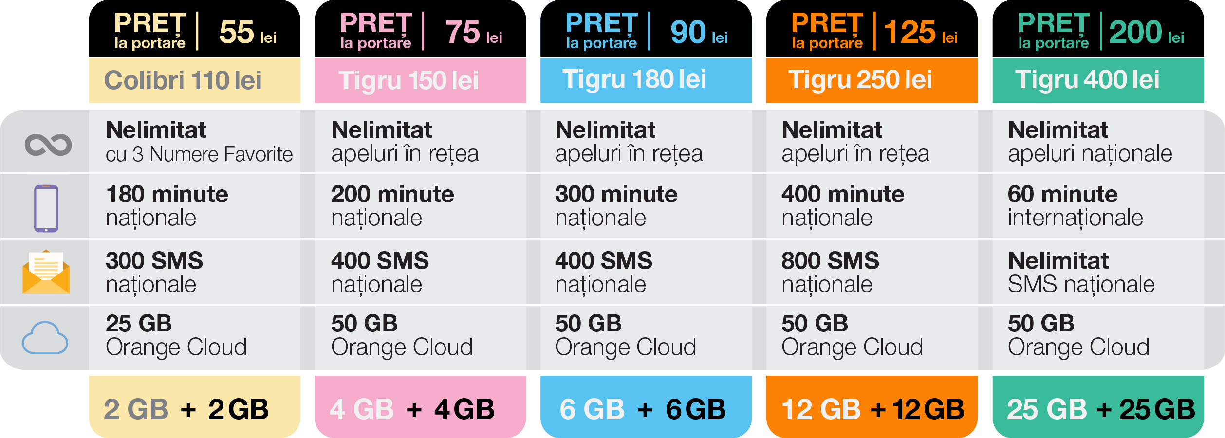 - Clientul poate beneficia de minutele/SMS și traficul Internet incluse doar dacă nu a depășit limita de consum aplicabilă Contului său Orange sau limita Cost Control.