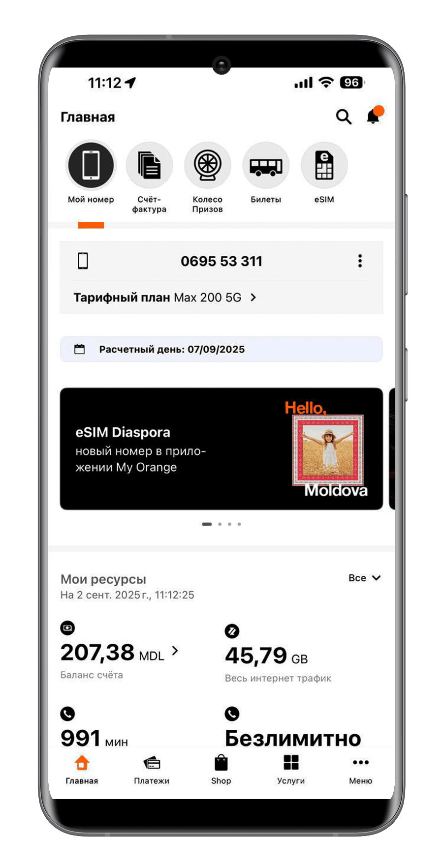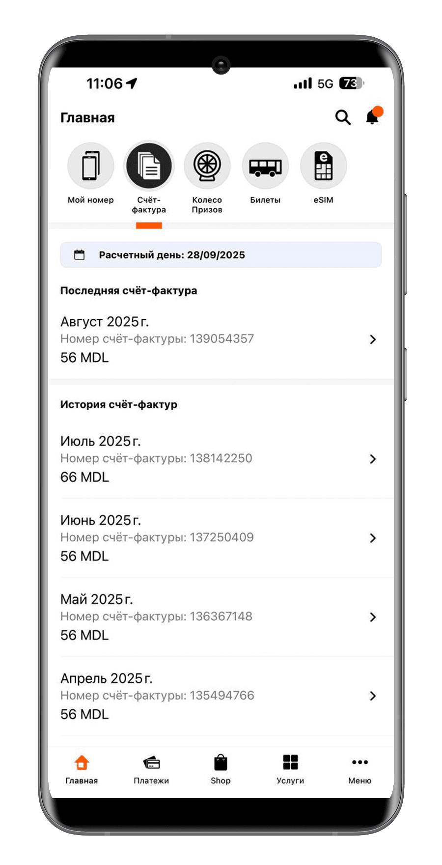 Вы можете в любой момент просмотреть счет-фактуру на все свои услуги Orange.