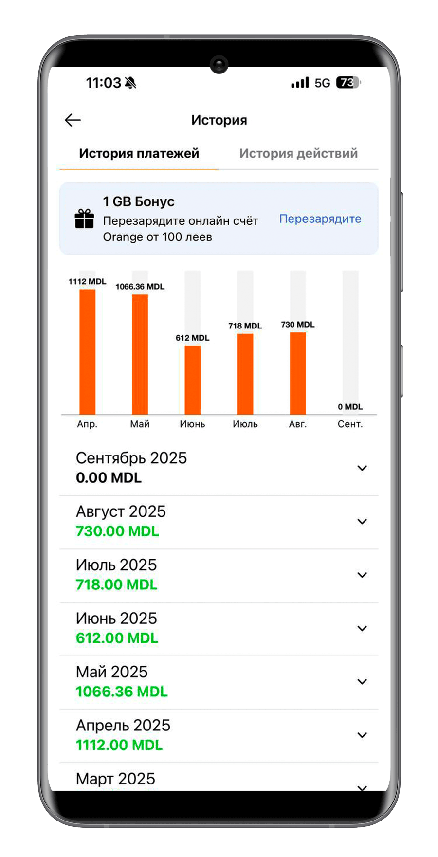 История платежей