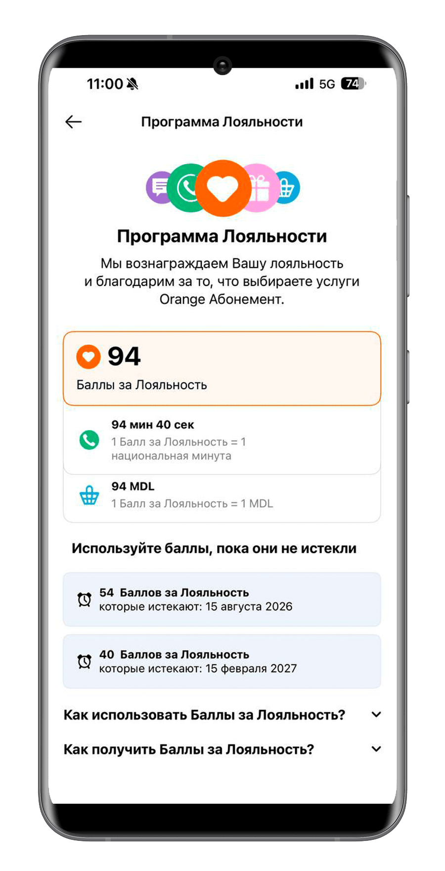Вы можете увидеть в приложении, сколько пунктов лояльности у вас есть и когда истекает срок действия каждого набора.