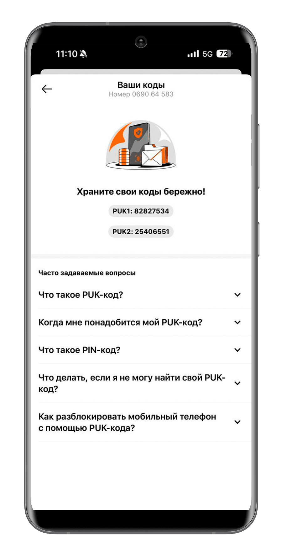 Узнайте код PUK
