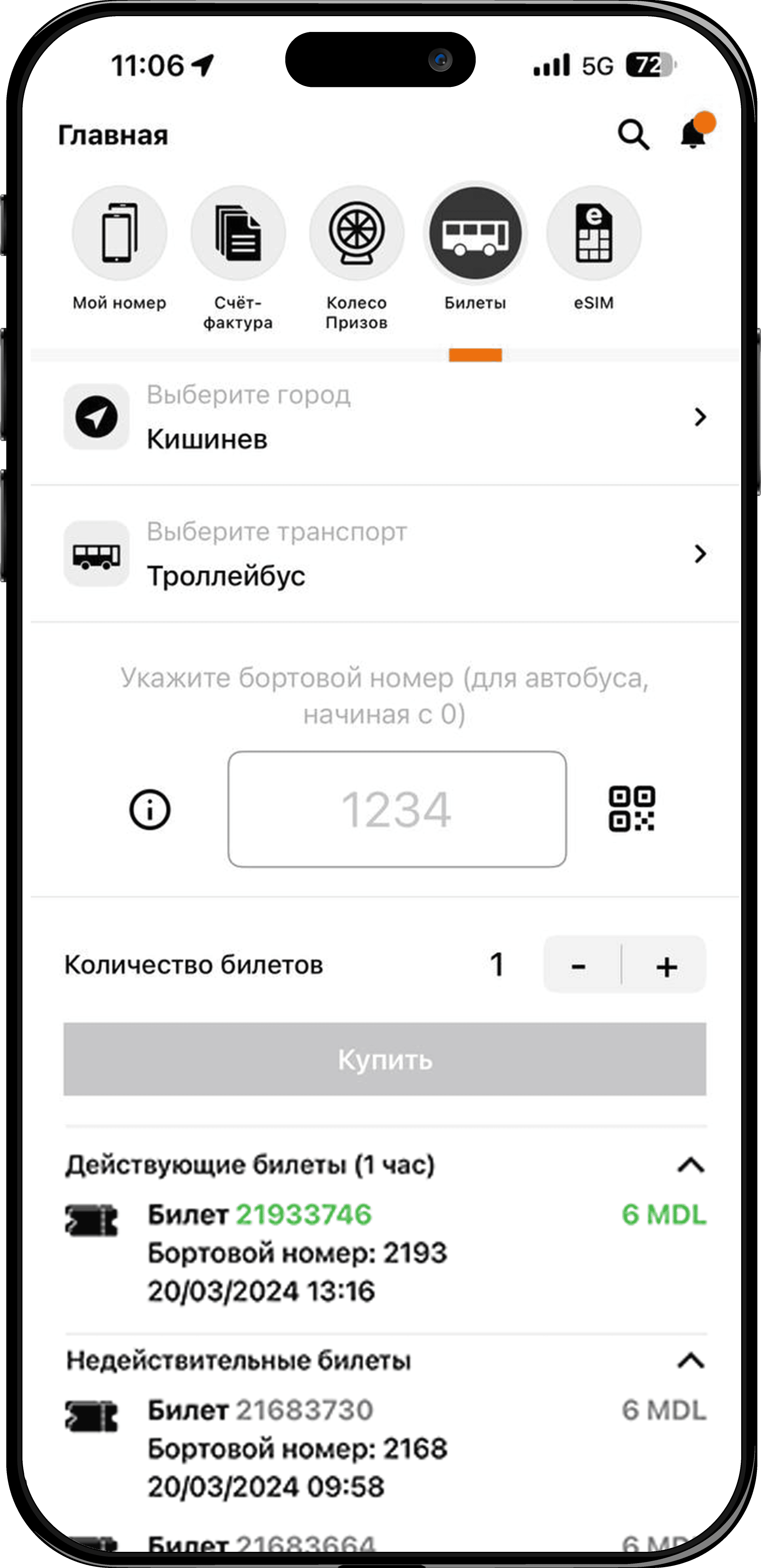 Все клиенты Orange с активным мобильным номером могут оплачивать проезд в троллейбусах и автобусах с помощью мобильного телефона, без комиссии или дополнительных платежей. Вы можете оплатить билет в приложении My Orange или через SMS. Выберите наиболее удобный для Вас метод и пользуйтесь общественным транспортом без забот.