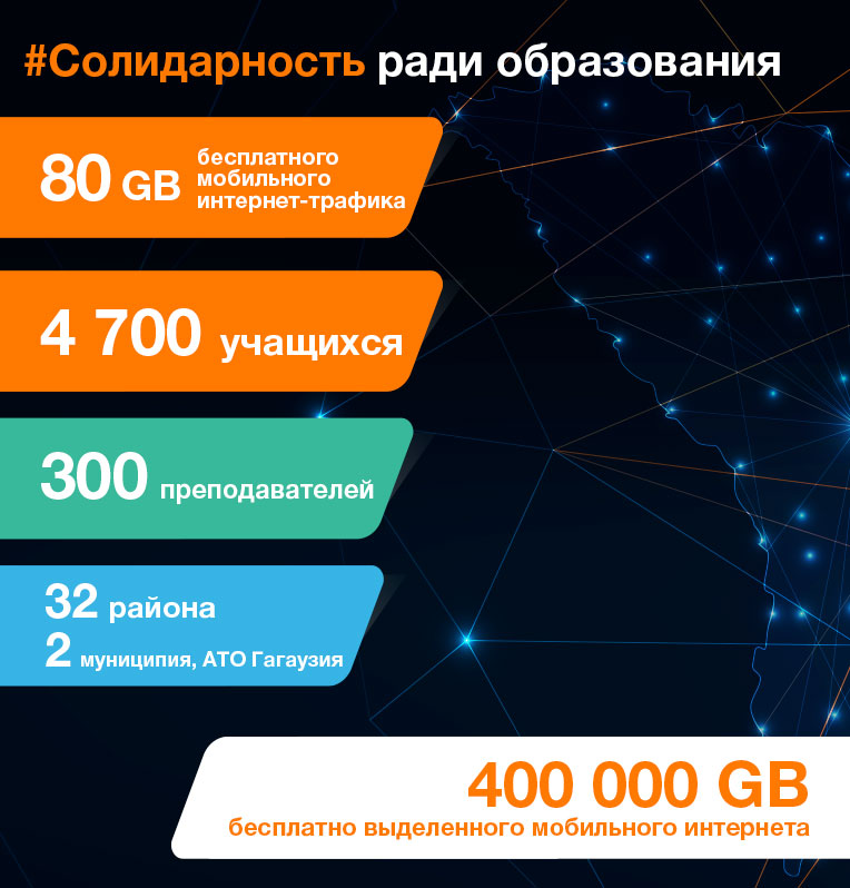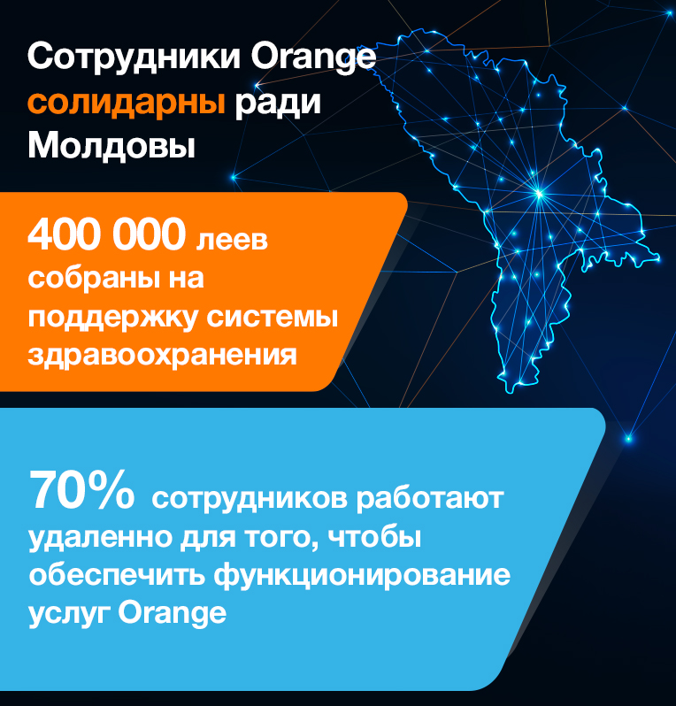 Orange Moldova солидарна с усилиями, прилагаемыми властями и обществом и активно принимает участие в предотвращении глобальной пандемии с максимальной ответственностью перед сотрудниками, клиентами, деловой средой, медицинской и образовательной системами.