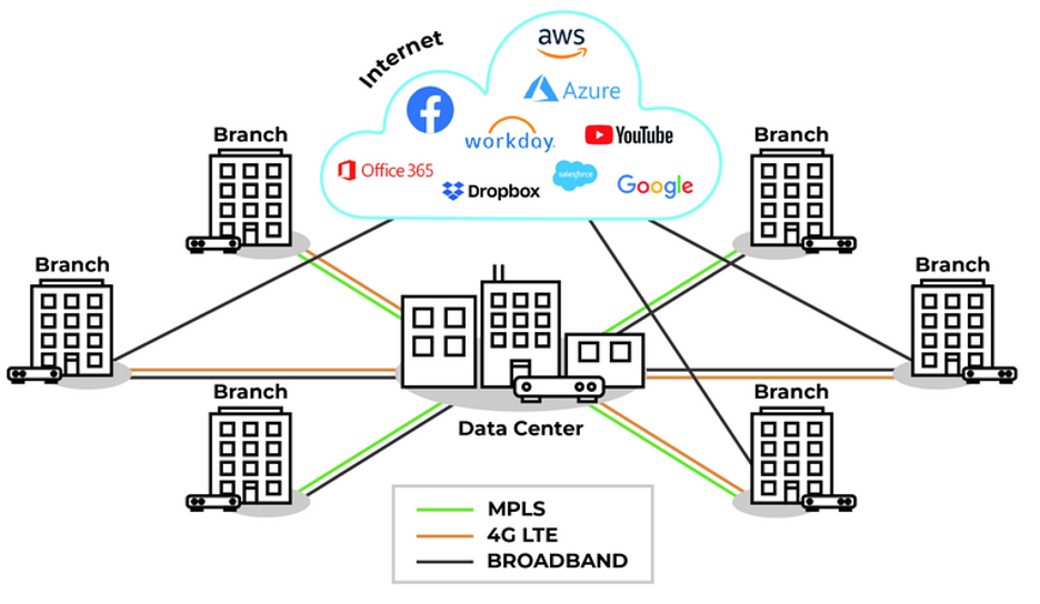 Это обеспечивает более гибкое, эффективное и экономичное управление трафиком данных между различными локациями компании, включая филиалы и центры обработки данных, часто используя интернет-соединения.