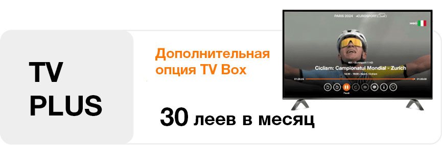 Бесплатно с любым абонементом на Fibră + TV Interactiv или опцией TV PLUS