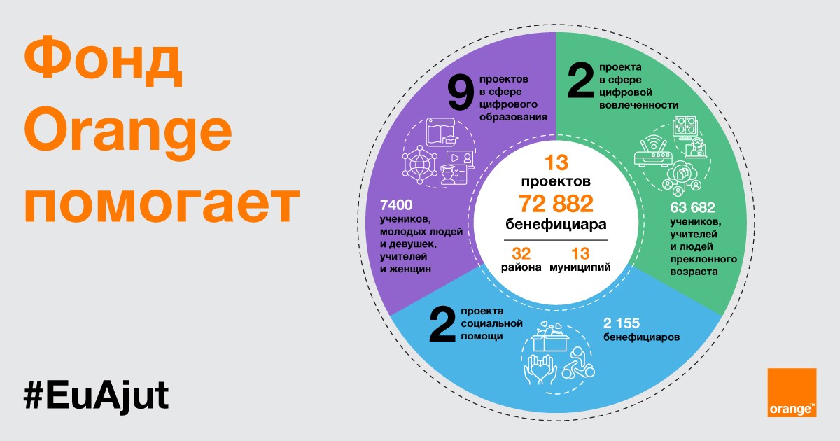 На протяжении более десяти лет Фонд Orange и лидер КСО на рынке телекоммуникационных услуг Молдовы реализовали большое количество проектов солидарности и создавали возможности для обеспечения доступа к технологиям для всех слоев общества. Бенефициарами проектов стали 72 882 человека, среди которых ученики и учителя, женщины, люди преклонного возраста и люди из социально уязвимых слоев населения со всей страны.