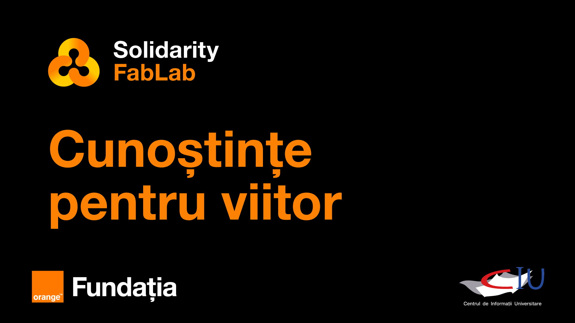 Solidarity FabLab, это проект по обучению в области цифрового производства. Он предназначен исключительно для молодежи с целью облегчить им вход на рынок труда, знакомя с профессиями будущего. Проект был запущен Фондом Orange в рамках Orange Group в 2014 году и реализуется в 19 странах Европы, Африки и Ближнего Востока. В Молдове Solidarity FabLab реализуется при полной финансовой поддержке Фонда Orange и реализуется Информационно-Образовательным Центром. На сегодняшний день проект Solidarity FabLab функционирует в рамках трех региональных центров, созданных и оборудованных при поддержке USAID, Швеции и UK Aid: в Сынжерее в Теоретическом Лицее «Олимп», Бизнес-Инкубаторе Сороки и Районной Библиотеке Орхея.