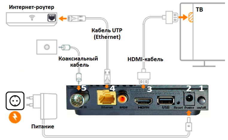 - Используйте LAN-кабель (UTP) для подключения приставки к вашему интернет-роутеру.